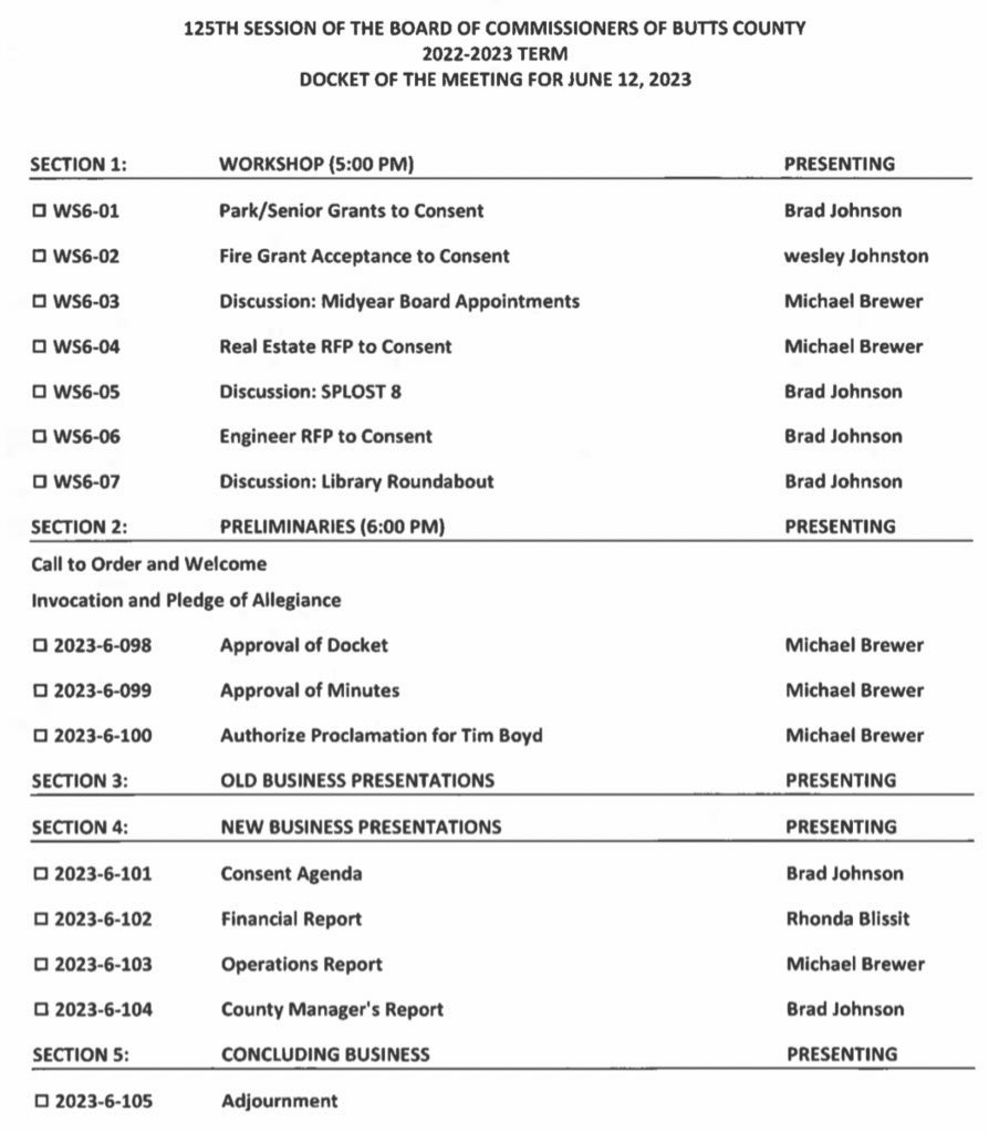 Docket of the October 6 2025 Board of Commissioners Meeting
