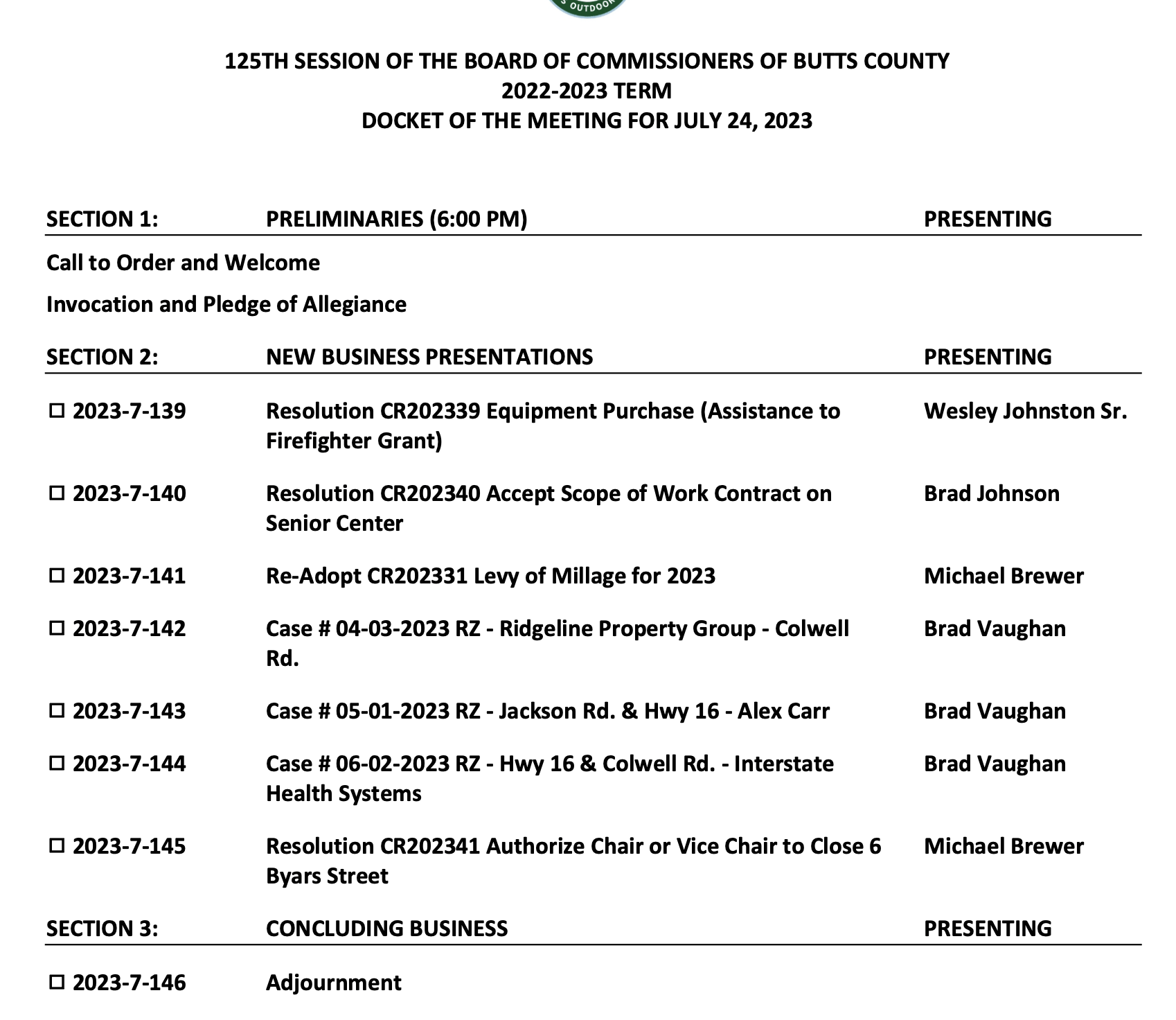 Docket of the October 27, 2025 Board of Commissioners Meeting